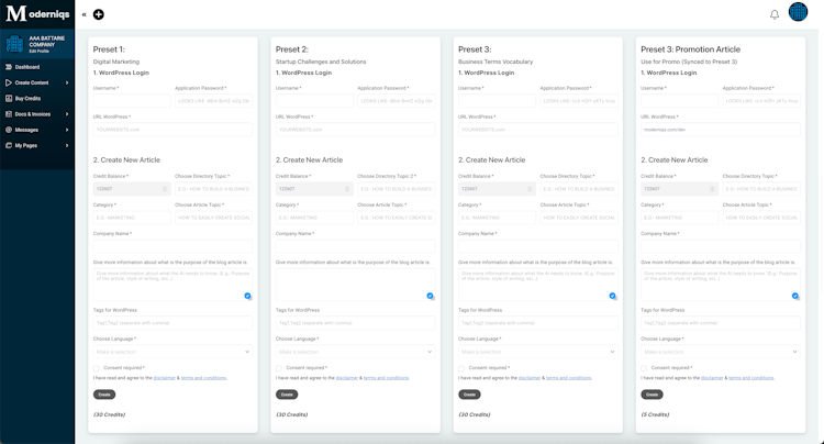 The 1-Click AI Blog Article App, developed by Moderniqs is an AI-enabled solution that lets users create SEO content for blogs and articles automatically, check plagiarism, track rank, and more.