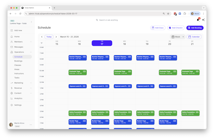 1club is an AI native gym and studio management software designed to streamline operations and accelerate growth for fitness businesses, sports centers and activity clubs. The platform serves a diverse range of facilities including fitness gyms, yoga studios, pilates studios, martial arts clubs, climbing gyms, tennis clubs and multi sport centers. It combines traditional management capabilities with artificial intelligence to automate routine tasks, identify business opportunities and improve operational efficiency.