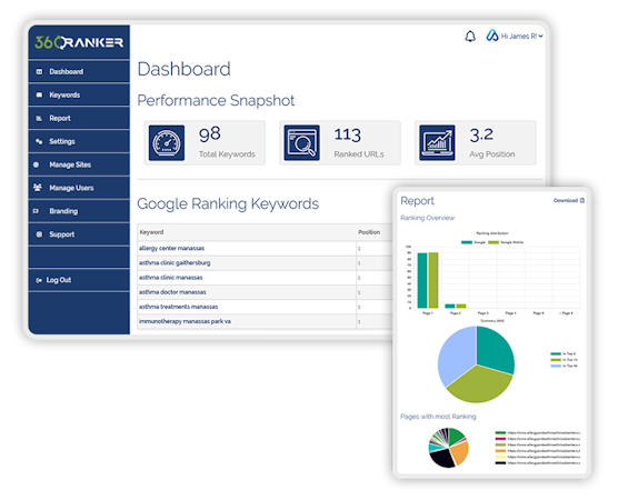 360 Ranker provides comprehensive website rank checker tools for SEO companies. With the lowest price points in the market, no other company can beat our price. Check the position of your customers’ websites on Google and Google Mobile. Create beautiful white-label SEO ranking reports for your customers in a second and give them access to your branded dashboard.