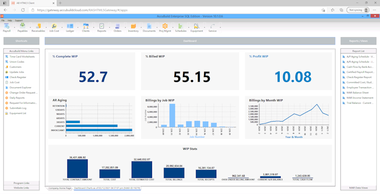 Using the A|B TimeClock 400, businesses can eliminate buddy punching and time theft while reducing the need for manual time entry. The app can be used on iOS and Android phones or tablets and integrates directly with AccuBuild. Additionally, the software’s payroll module supports the unique needs of construction businesses, including multi-state processing, union reporting, workers’ comp, and more. It provides detailed reporting in various formats such as quarterly payroll tax reports, employee information reports, certified payroll/prevailing wage reports, and many others. Other AccuBuild features include an inventory system, scheduling module, and the A|B Analytics cube reporting tool.