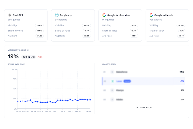 • Continuous Optimization: Proven methodologies for improving AI visibility with measurable results