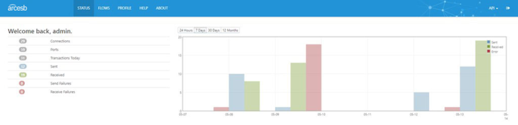 Other features of Arc include API management, load balancing, data visualization, analytics, and data mapping. Administrators can track incoming requests, transactions, or documents and gain visibility into data transfers throughout the organization.