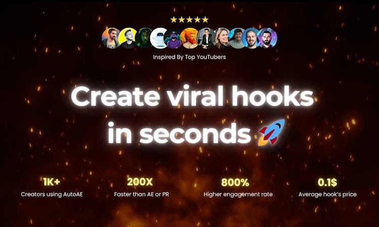 AutoAE is an online video creation platform designed to help creators and businesses grow YouTube presence. The platform offers a suite of tools that enable users to generate viral hooks, trending flowchart videos, 3D clips, animated Google searches, and dynamic text transitions.