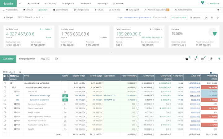 Bauwise is a construction cost management software designed to help businesses track completion, budget, performance, expenses, daily profit, changes, and other metrics across external or internal projects. Supervisors can access accounting data in real-time to compare forecasts against commitments, allocate purchase invoices and identify potential risks within job cost items through visual indicators.