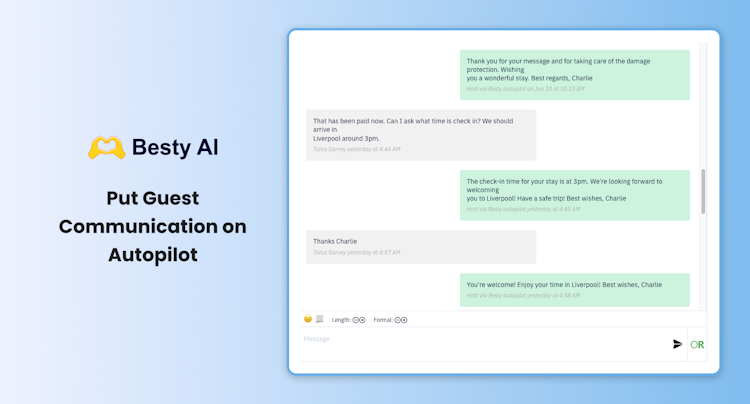 Besty is an AI-enabled guest messaging and revenue optimization tool designed for rental managers. It helps operators automate and streamline their guest communications and revenue-generating activities through a suite of AI-enabled features.