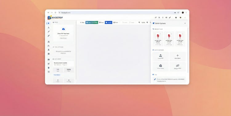 BoostPDF is a comprehensive PDF management solution that delivers a full suite of document editing, conversion and optimization capabilities through modern web browsers. The application eliminates the need for local software installation and provides professional grade tools for business professionals, educators, legal practitioners and administrative staff. The platform follows a privacy first architecture whereby most processing occurs locally within the user browser to ensure sensitive documents remain on the user device during editing operations.