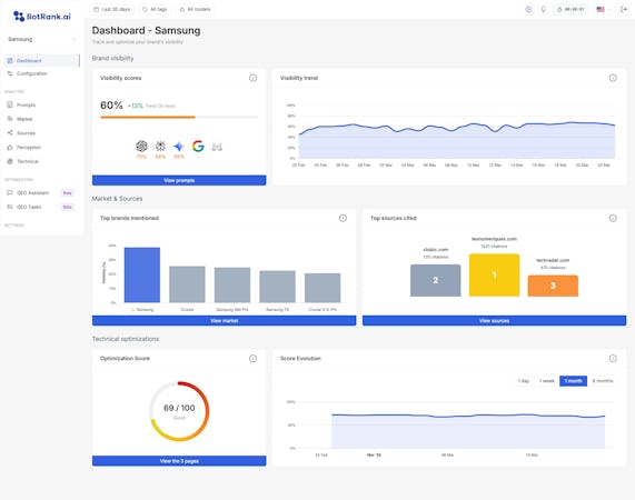 BotRank.ai is a Generative Engine Optimization software platform designed to analyze and enhance brand visibility within AI search engines and conversational interfaces. The platform enables organizations, marketing teams, and digital strategists to monitor how their brands, products, and content are referenced and cited by major AI systems including ChatGPT, Perplexity, Google AI Overview, Gemini, and Mistral. BotRank.ai extends search optimization efforts beyond traditional SEO into the landscape of AI-generated search results where conversational AI engines serve as primary discovery channels. The platform supports multilingual and multinational analysis across diverse markets.