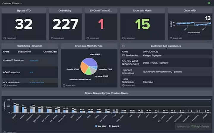 BrightGauge is a business intelligence solution that enables organizations to manage goals, create reports, and more while providing visibility into key performance indicators (KPIs) using dashboards. Integration with numerous third-party products, including ConnectWise, QuickBooks, Xero, ServiceNow, QuoteWerks, and others, is made easier by this.