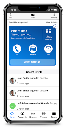 Mobile-first workflows reduce “end-of-day admin.” Reps can capture activity in seconds while they’re on the move, making it easier to maintain coverage, increase touchpoint consistency, and protect selling time.