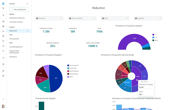 Extensive integration capabilities are provided through an API that automates data ingestion from enterprise systems and handles high-volume data securely. The platform supports collaborative workflows with suppliers who can validate or update emissions data directly within the system, with all changes recorded through version history for audit purposes. A flexible data ontology adapts to regulatory frameworks including CBAM, CSRD and EUDR without the need for questionnaires. The Studio component offers customizable role-based dashboards that can be deployed enterprise-wide and includes pre-configured templates for reporting standards such as CSRD, Science Based Targets initiative and ECOVADIS to meet the needs of stakeholders from executives to procurement, finance and site managers.