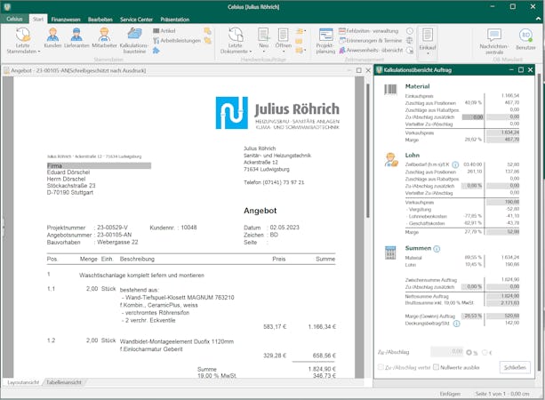 The system features a modular architecture that can be customized to match specific operational requirements. The cost calculation module supports industry specific templates integration of assembly time standards and automated material requirement computations. Document generation components enable rapid production of quotes order confirmations work instructions and invoices with live preview capabilities. Non ferrous metal management adjusts material pricing based on market rates and imports weight data through DATANORM interfaces. Project planning tools provide a drag and drop resource assignment board absence management and project controlling for comparison of planned versus actual time expenditures. Maintenance functions store individual service specifications define interval reminders and generate automated notifications. The mobile application extends functionality to field operations by facilitating location navigation digital diary maintenance time recording material withdrawal documentation checklist completion and signature capture. Inventory oversight is achieved through warehouse management with batch and serial number tracking and configurable reorder thresholds. Measurement and takeoff features support data capture via mobile devices manual entry or CAD imports with automatic material calculations. Time tracking functions document work hours and absences in office and field interfaces to satisfy regulatory recording obligations while minimizing administrative effort. Central data management consolidates projects customers suppliers employees and documents into a unified searchable repository accessible from office and field locations.