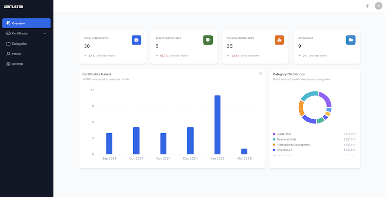 CertLister is a comprehensive certificate verification system and training records management software designed for educational institutions and training centers. The platform streamlines the entire certificate management lifecycle from issuance to verification and addresses the challenges faced by organizations that handle large volumes of certifications and compliance documentation. CertLister supports schools, universities, corporate training programs, professional training centers and online course platforms in achieving efficient certification workflows.