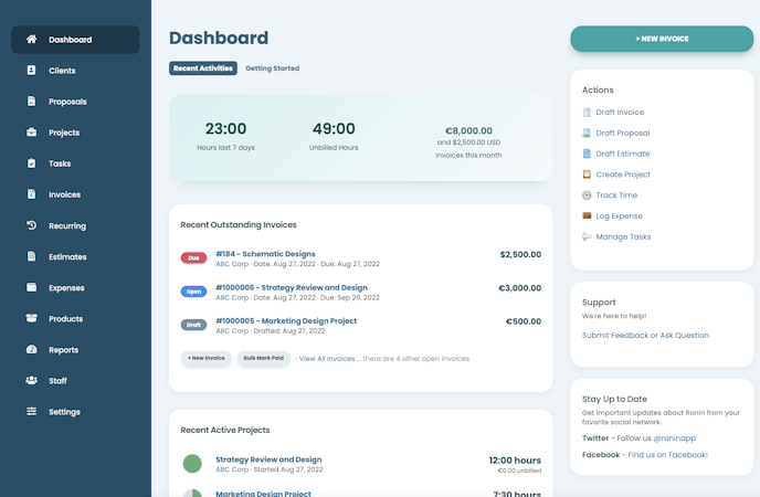 Clientary handles all of the most common flows with client-facing businesses. From nurturing prospects with beautiful proposals to tracking time/expenses and billing clients with professional invoices, Clientary has you covered.