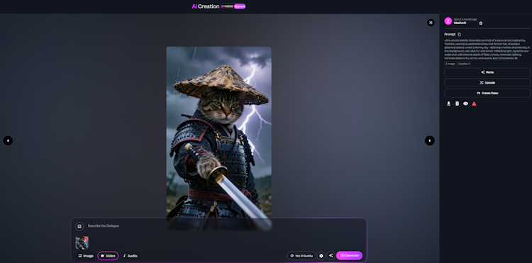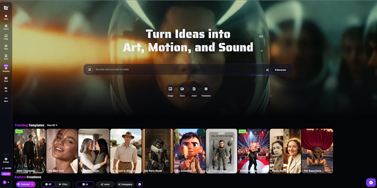 The platform enables multi model content generation through a single dashboard with unified credit management and model specific parameter configurations. The video generation component supports both text to video workflows that render narratives into motion sequences and image to video workflows that animate static visuals through camera movement extrapolation. The image generation component offers style control configurations, seed locking for consistent reproduction and real time rendering across diverse artistic styles. Advanced creative controls include aspect ratio selection for vertical and horizontal formats, background removal functionality and ultra high resolution upscaling through integrated enhancement tools.