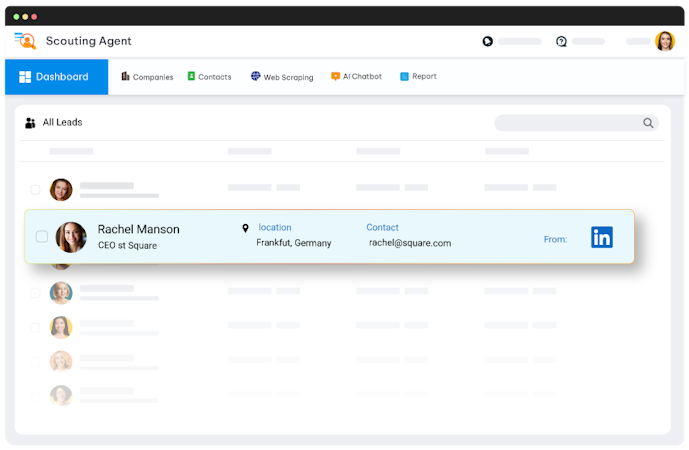 The AI Scouting Agent starts by building your Ideal Customer Profile (ICP) and continuously discovers high-fit leads across multiple sources. It enriches every contact with verified data—names, titles, emails, phone numbers, LinkedIn profiles, and company information—ensuring your pipeline stays full with qualified prospects that match your target profile.