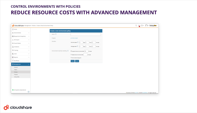 The platform enables participants to log in via invitation and switch between environments on a unified interface. CloudShare allows managers to encrypt sensitive data in accordance with secure sockets layer (SSL) security protocols. Supervisors can also generate reports and gain real-time insights into environment usage and optimize performance accordingly.