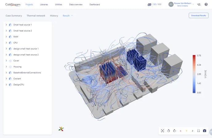 ColdStream simplifies the process of finding the right heat sinks to cool electronic devices and products. Users can upload the geometry, configure the thermal simulation operating conditions, and set up design objectives for heat sinks with just a few clicks. ColdStream automates the typical pre-processing steps, such as meshing and materials selection, and provides a standard heat sink and cooling design optimized to meet specific needs.