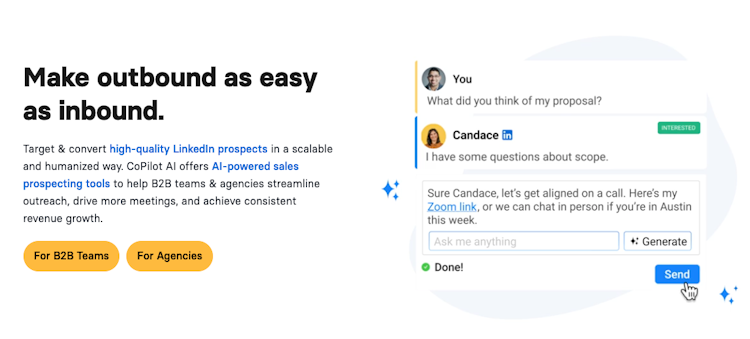 • Purposeful Message Generation: With CoPilot AI, you can create one-click purposeful and engaging messages that not only capture prospects' attention but also expertly guide them toward conversion.