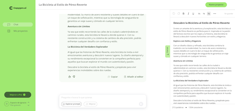 AI writing assistant for creating copies in Spanish