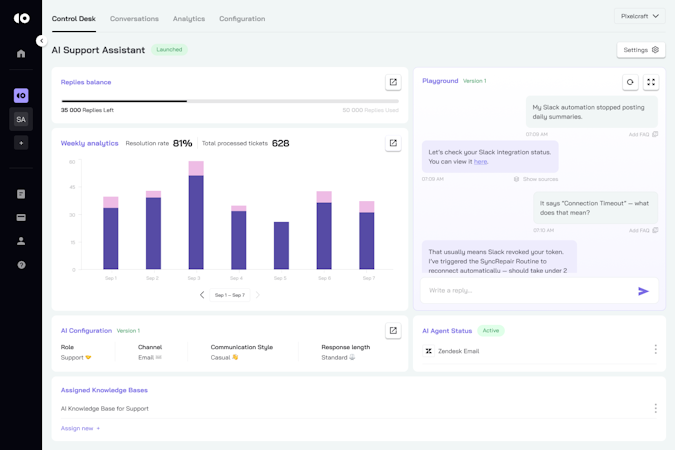 Thanks to patented architecture, the platform integrates smoothly with tools like Zendesk, Intercom, Salesforce, and Freshdesk. It’s easy to launch in under 10 minutes and includes transparent pricing, unlimited users, and enterprise-grade security (ISO 27001, GDPR, and CCPA compliant).