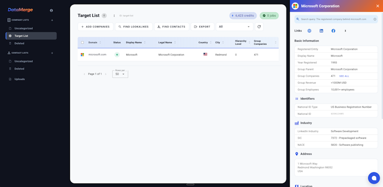 DataMerge is a business to business data enrichment platform that aggregates company information and contact data from multiple data providers through preconfigured enrichment waterfalls. The solution addresses requirements for sales prospecting, compliance verification, financial due diligence, revenue operations, and procurement processes. The platform maintains a repository of over three hundred seventy-five million companies across global markets and offers unified access to company data and individual contact information through a single interface. The platform serves sales teams, finance departments, compliance officers, revenue operations professionals, procurement groups, and organisations deploying artificial intelligence agents requiring structured business intelligence.
