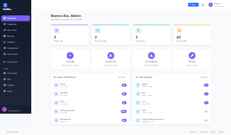 The platform serves small and medium sized enterprises, e commerce operations, marketing consultancies, and independent entrepreneurs operating in Latin American markets. It provides data driven insights to assess the impact of online marketing initiatives and to maintain full control over link presentation and associated analytics. Datifica delivers a unified environment for managing shortened URLs, QR codes, and related performance data without reliance on multiple systems.