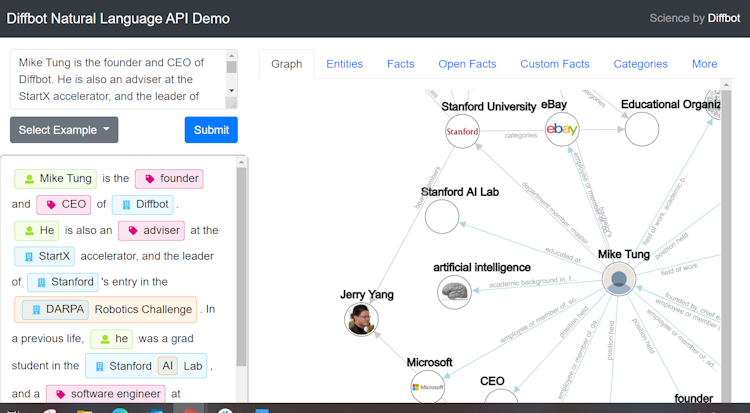 Diffbot’s user interface