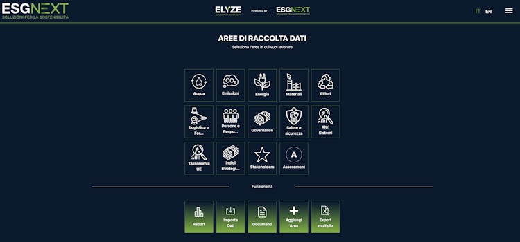 Elyze is a cloud-based sustainability management software that facilitates the aggregation, monitoring, and sharing of sustainability data through Environmental, Social, and Governance (ESG) indicators.