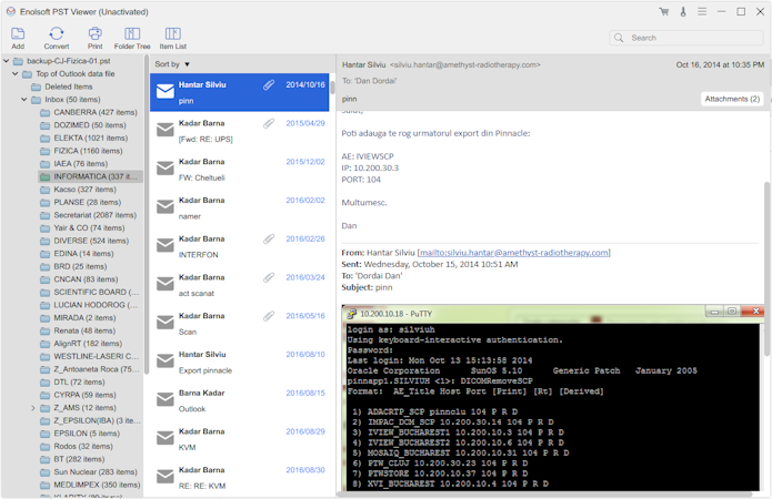 Attachment indicators in the folder tree highlight messages with attachments and a header area counter displays attachment totals. Attachments can be previewed in place and opened in default applications or exported individually or in batch. Batch processing of multiple PST files supports simultaneous management of large archives. Conversion features transform PST data into widely supported formats while preserving the original folder hierarchy, formatting and metadata with an option to omit empty folders.