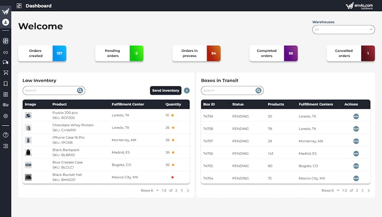 Users can configure custom workflows, set automation rules, manage inventory, create product bundles, perform bulk actions, track orders in real time, and communicate with the fulfillment center all from a single platform. Through Envia's integrated shipping software, businesses also gain access to discounted domestic and international courier rates, along with cargo shipping solutions.