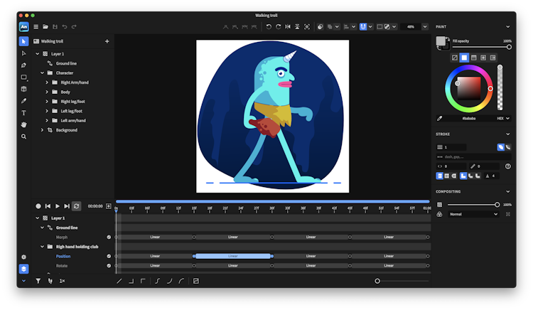 The software offers capabilities for importing, editing, and animating SVG icons and illustrations. Users can also transform PDF and Adobe Illustrator vector graphics into appealing motion experiences, as well as bring Figma designs to life with animation. Expressive Animator's keyframe-based vector animation system gives creators total control over their work, with productivity-enhancing tools like the easing editor, motion path, and object visibility bar. The software's professional vector tools, including pen and shape tools, Boolean operations, and mask/clip path functionality, enable users to illustrate their creative ideas.