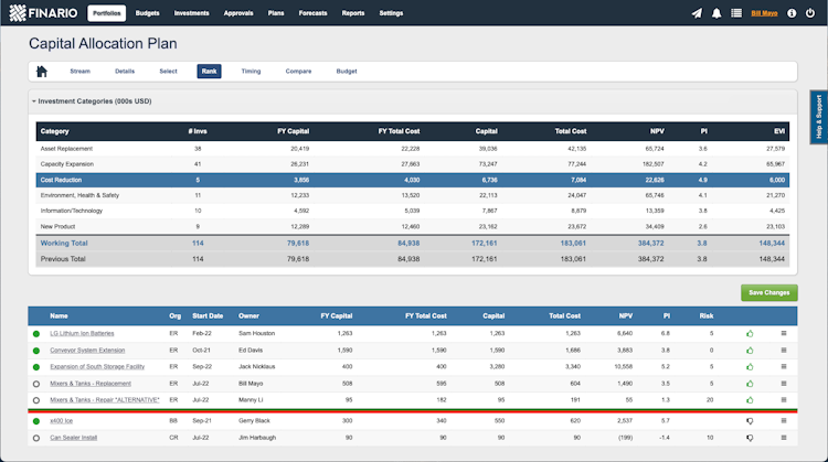 - Enable stack ranking of Capex projects