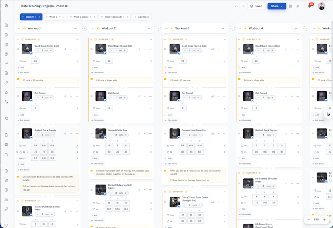 At its core the workout builder offers trainers access to a library of more than one thousand exercises complete with high definition video demonstrations. The drag and drop interface allows creation of unlimited customized training programs without requiring technical expertise or coding knowledge. Trainers may select from pre-existing movements or define custom exercises tailored to specific client needs and fitness levels. Program templates can be duplicated and adjusted for different clients to reduce the time required for developing individualized training plans.