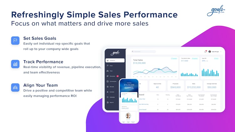 Goals.com is a CRM and sales performance software. It drives sales performance for teams with goal setting, tracking, incentives and much more. Through dynamic, intuitive features, Goals.com provides straightforward navigation and data so sales teams can focus on selling rather than reporting.