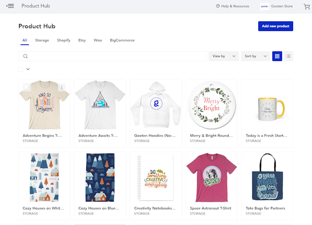 Gooten offers an API, which facilitates integration with various eCommerce websites including Big Commerce, Shopify, Etsy, and WooCommerce. With Gooten Seven, managers can streamline sourcing, store launches, routing, and more.