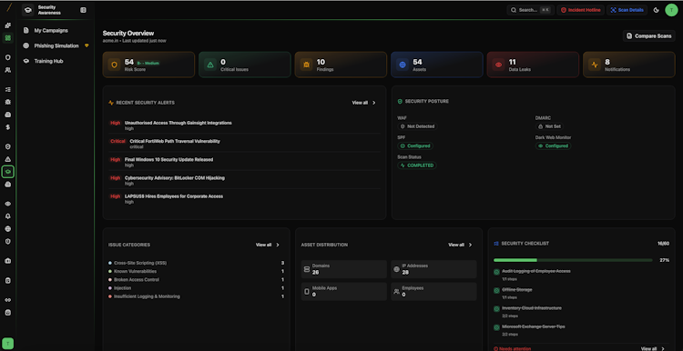 The core functionality centres on realistic phishing simulation campaigns using a library of more than fifty attack templates covering CEO fraud, invoice scams, helpdesk impersonation, credential harvesting and smishing. Simulations are customised per employee by leveraging directory data that includes name, department, role and location and are scheduled at random times to avoid detection. When an employee engages with a simulated phishing email, the system immediately redirects to a targeted training module that explains missed indicators and malicious characteristics. This adaptive training adjusts content to individual failure patterns rather than generic compliance videos. Every employee receives a Human Risk Score based on simulation performance, training completion and reporting behaviour. The training library spans phishing recognition, password hygiene, social engineering tactics, ransomware awareness, data handling procedures and insider threat prevention and is available in English, Hindi, Tamil, Telugu and additional regional languages. The platform also includes a one-click phishing report button for Outlook, Gmail and mobile email clients that awards recognition points for accurate reports to support a positive security culture.