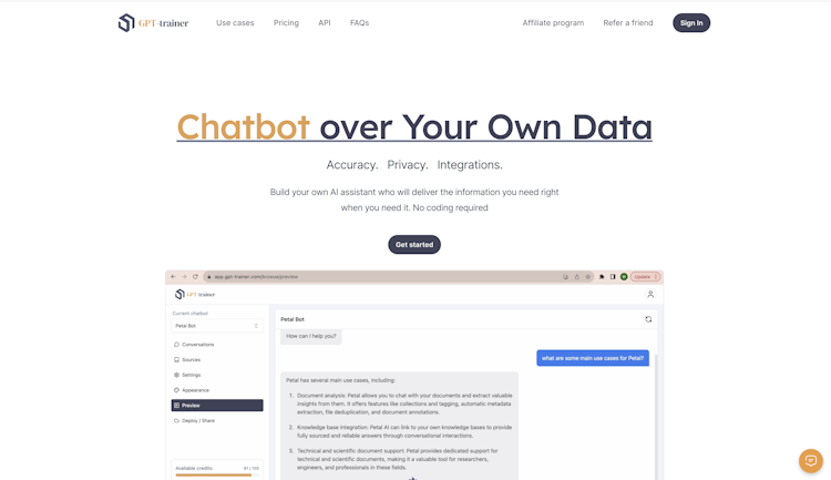 One of GPT-trainer's key technical advantages is its ability to train chatbots on users' own data, ensuring more accurate responses that are tailored to their specific needs. The platform also offers automated re-training and updates to keep the AI assistant up-to-date and functioning at optimal performance levels.
