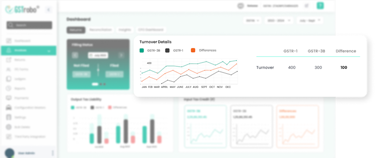 1. GST Return Filing and ITC Reconciliation: It automates preparation of all GST returns (GSTR-1, 2B, 3B, 6, 8, 9 & 9C). Error-checking ensures ~100% ITC accuracy, reducing rework and disputes. Instant purchase register vs. GSTR-2B/2A reconciliation prevents revenue leakage. CFO dashboards provide drill-down views into turnover, blocked ITC, reversals, and liability distribution.
