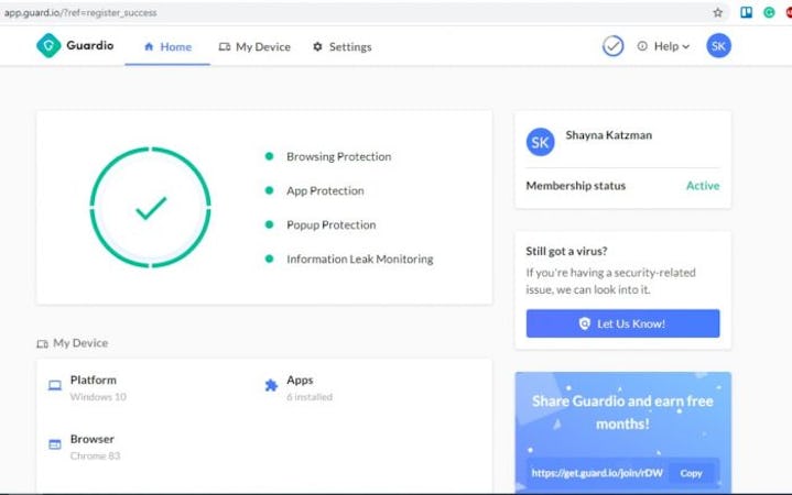 Guardio’s user interface