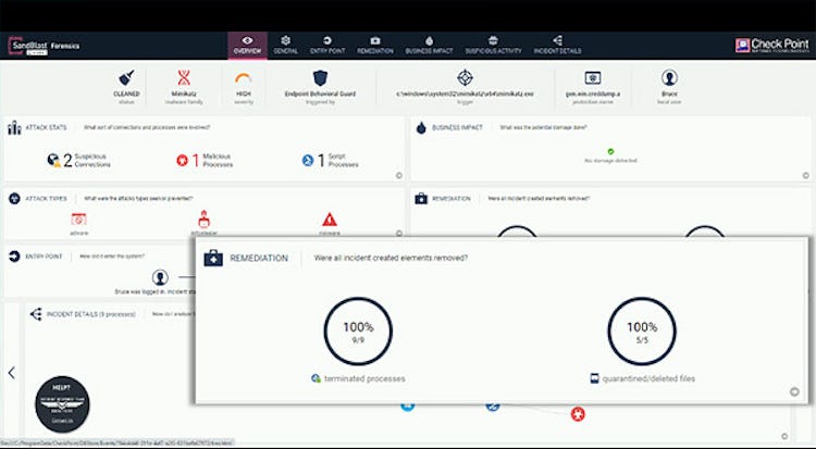 Harmony Endpoint automatically generates forensic reports to provide insights about affected assets, attack flow, and several endpoint events such as risky files, launched processes, and network activity. Using the threat hunting feature, IT teams can use predefined or custom queries to identify and evaluate suspicious incidents. It also helps restore encrypted files using snapshots and blocks malware mutation in real-time based on minimal process execution tree similarities.