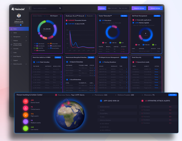 Heimdal Endpoint Detection and Response (EDR) provides a layered and integrated approach to cybersecurity. The EDR technology is built upon an innovative technology that allows for continuous prevention using DNS-based attack protection and patching, combined with an immediate response to advanced cyber threats of all kinds. In contrast to conventional cybersecurity protection methods, like Antivirus and Firewalls, EDR brings greater visibility into your endpoints and enables faster response times when threats arise. Heimdal's EDR tool offers prevention, hunting, and remediation capabilities and quickly responds to sophisticated malware, both known and yet unknown. Additionally, data analytics helps businesses to proactively respond to incidents by leveraging IOCs and IOA’s.