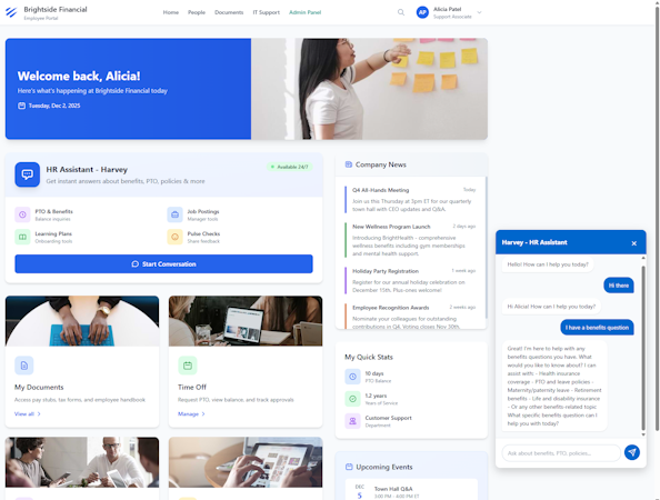 Response validation is governed by patent protected deterministic AI guardrail technology aligned with standards from the Society for Human Resource Management Body of Applied Skills and Knowledge. Organizations define custom guardrails that specify referenced policies, escalation triggers, confidence thresholds and authoritative data sources. The platform supports human in the loop governance, full auditability and soc two ready architecture to address sensitive use cases and maintain compliance across distributed environments. Interactive organizational discovery enables users to locate people, teams and resources within complex company structures.