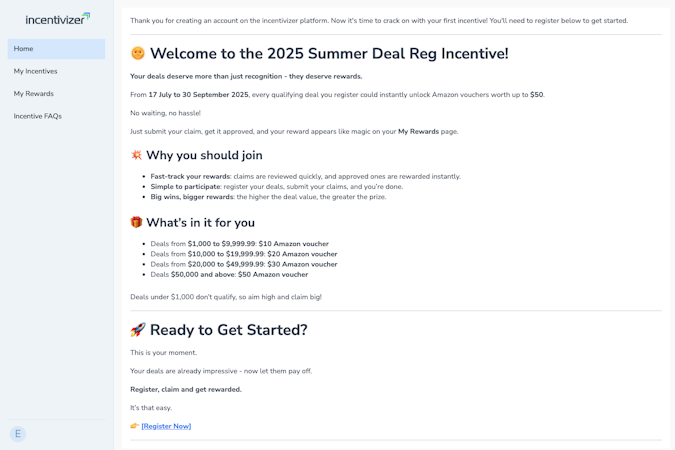 Incentivizer is a channel incentive management software platform designed for startups, scale-ups and enterprises seeking to optimize partner sales programs. The platform enables organizations to design, deploy and monitor diverse incentive programs that enhance partner engagement, foster pipeline creation and accelerate deal closures. The solution addresses common challenges of manual spreadsheet management, multi-currency reward fulfilment and real-time performance tracking inherent in channel incentive initiatives. Clients report measurable increases in partner participation and pipeline generation, and the platform has facilitated more than one billion dollars in closed business globally.