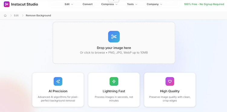 Instacut Studio is a browser-based image editing platform that delivers advanced artificial intelligence capabilities for photo manipulation and document processing without requiring software installation or user registration. The platform presents a comprehensive environment suited for photographers, designers, marketers, and business professionals who demand precise image transformations and efficient file management. Processing occurs within users’ browsers or on secure servers that immediately delete files after completion. The architecture is designed to maintain strict privacy and data control throughout the entire workflow.