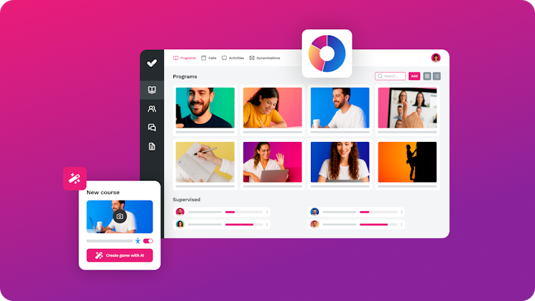 Create your own training 10× faster with the built-in AI authoring tool, which generates images, videos, avatars, exercises, translations, and voiceovers in just a few clicks.