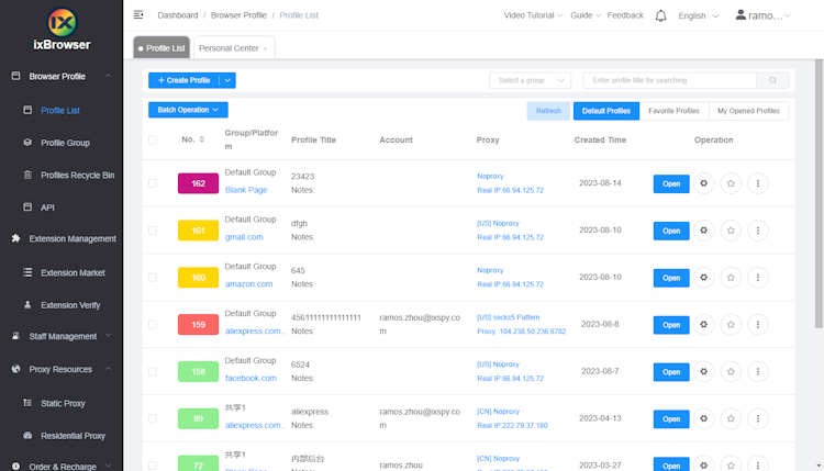 With ixBrowser, owners can manage numerous standalone accounts. The solution assists in evading detection and subsequent restrictions from various online platforms. Simultaneously, users can generate distinct profiles and extend limitless invitations to team members.