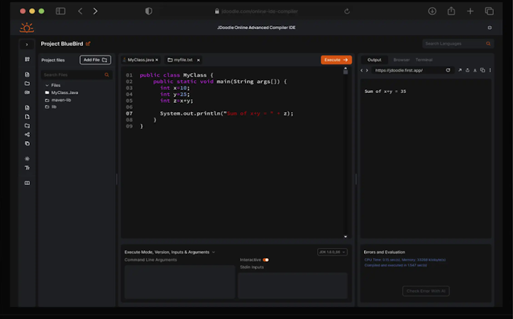 JDoodle is a cloud-based and AI-enabled integrated development environment (IDE) platform that allows users to code, compile, and run programs across multiple programming languages. The platform offers application programming interface (APIs) and plugins to integrate coding functionality directly into websites, learning management system (LMS), and other applications.