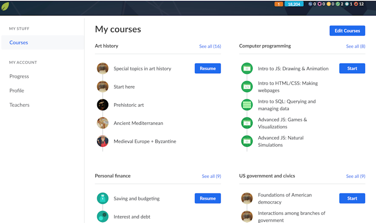 Khan Academy provides an easy to navigate interface for students and other learners of all ages.