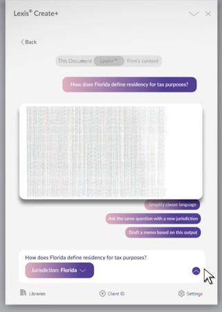 Lexis Create+’s user interface