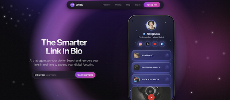 Linklay is a link in bio platform designed to consolidate multiple web destinations into a single shareable URL for social media profiles. The software serves content creators, musicians, artists, podcasters, real estate professionals, influencers, and small businesses that require a centralized landing page to direct social media audiences to various online resources. Unlike traditional link in bio tools that function as static directories, the platform incorporates artificial intelligence optimization to automatically reorder links based on predicted visitor intent while providing comprehensive visitor tracking and retargeting capabilities. This approach addresses the limitation imposed by networks that restrict users to a single clickable link in profile sections.
